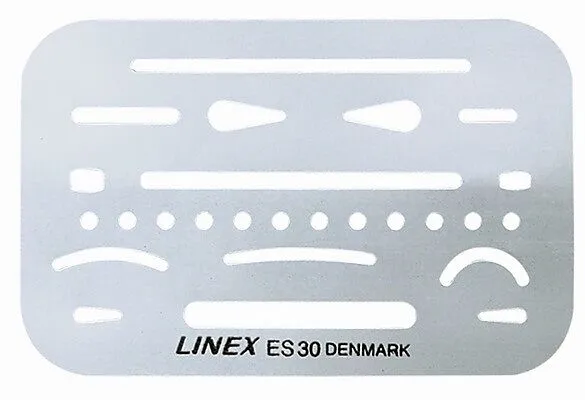 Die Radierschablone von LINEX wurde aus feinstem rostfreiem Stahl hergestellt für eine lange Lebensdauer! Die 26 verschiedengrossen Öffnungen sorgen für ein genaues und leichtes Korrigieren!