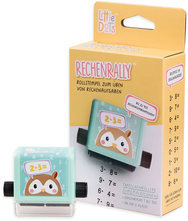 RECHENRALLY - Rollstempel Rollstempel zum üben von Rechenaufgaben, ab 2. Klasse Zahlenraum 1 bis 100 Bis zu 100 Rechenkombinationen Ideal für Eltern / Schulen zum Üben mit den Kindern Schnell und leicht verstellbar für viele Rechenkombinationen Mehr als 100 M...