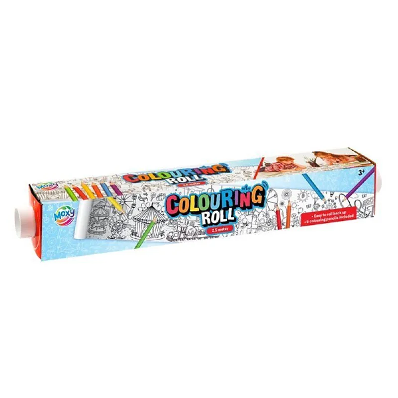 Malrolle mit Aufdruck 2.5mx42cm mit 6 Buntstiften.