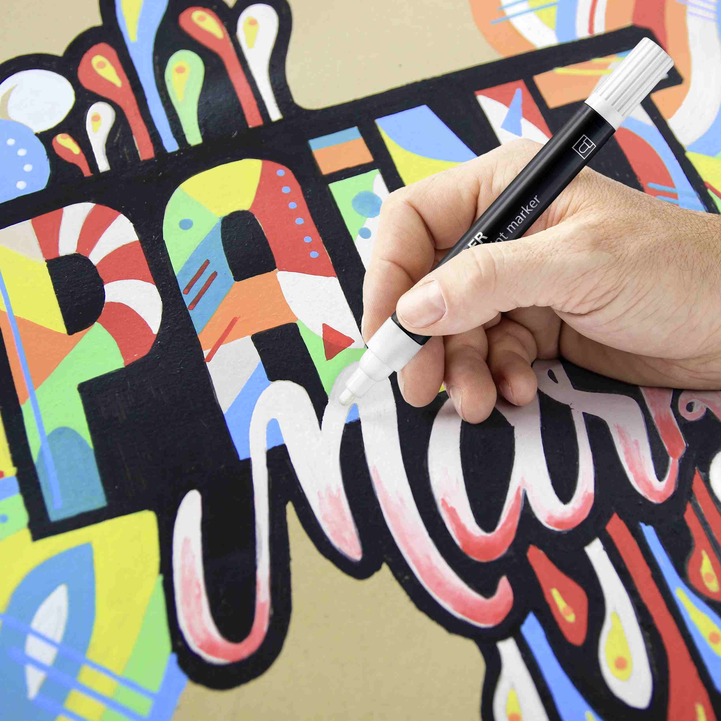 Für die deckende Beschriftung, Dekoration und Gestaltung fast aller hellen und dunklen Oberflächen wie z;B; Papier, Karton, Plastik, Metall, Glas, Keramik, Holz, Stein etc; Permanente, geruchsarme Acryltinte auf Wasserbasis ; Hervorragend wisch- und wasserfest...