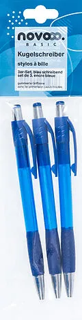 Kugelschreiber Set Mit dem 3-teiligen Kugelschreiber-Set von NOVOOO Basic sind Sie optimal für's Büro oder Besprechungen ausgestattet. Die schlichten und eleganten Kugelschreiber sind mit einer gummierten Griffzone und einem Clip ausgestattet. 3 Stück/Pk...