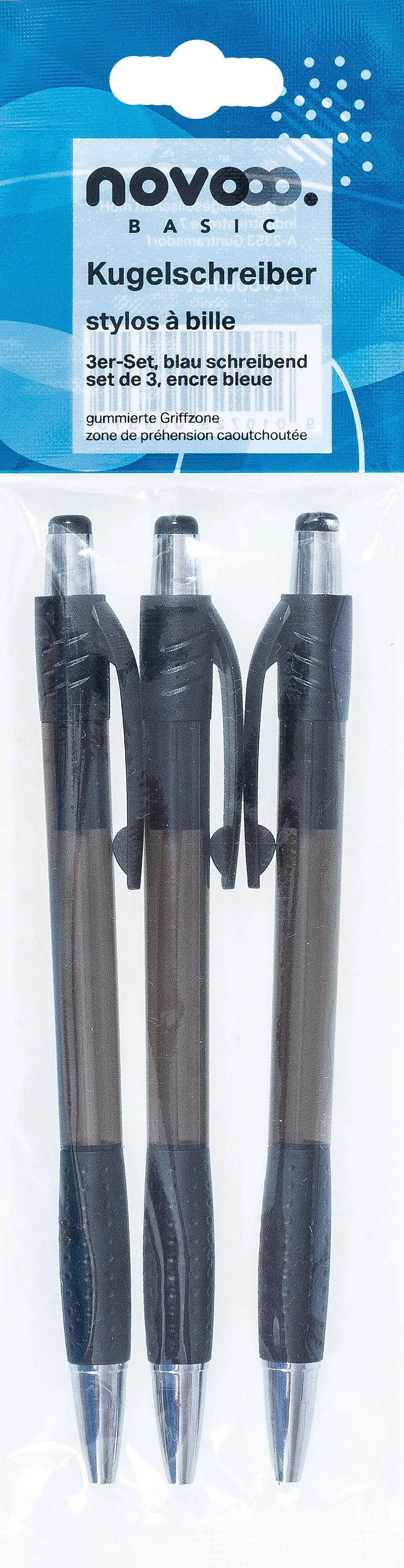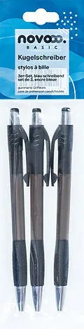 Kugelschreiber Set Mit dem 3-teiligen Kugelschreiber-Set von NOVOOO Basic sind Sie optimal für's Büro oder Besprechungen ausgestattet. Die schlichten und eleganten Kugelschreiber sind mit einer gummierten Griffzone und einem Clip ausgestattet. 3 Stück/Pk...
