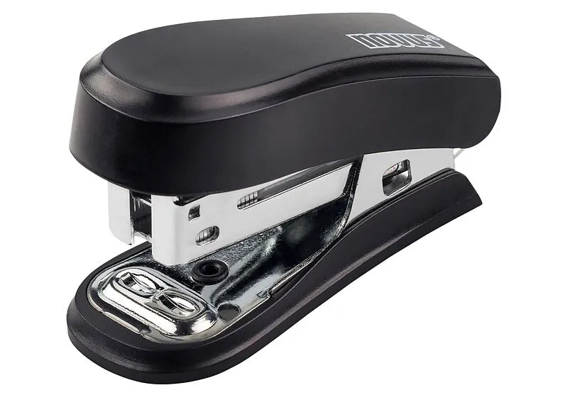 Kleines und handliches Heftgerät mit Magazinführung aus Metall und einer Heftleistung von 12 Blatt. Für 40 Heftklammern 24/6. Blister-Verpackung inklusive 320 Heftklammern 24/6. 2 Jahre Garantie.
