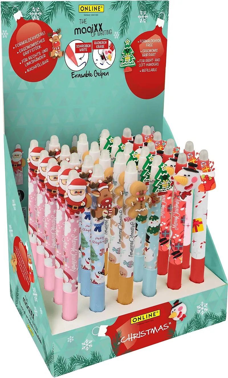 MAGIXX - Gelschreiber Gelpen mit weihnachtlicher Clipfigur und radierbarer Mine 0,7mm, Schreibfarbe blau. Die Mine ist kompatibel mit allen gängigen Gelpens. Der Gelpen ist für Rechts- und Linkshänder geeignet. 3 Gelpens im Beutel. Erhältlich in verschiedenen...