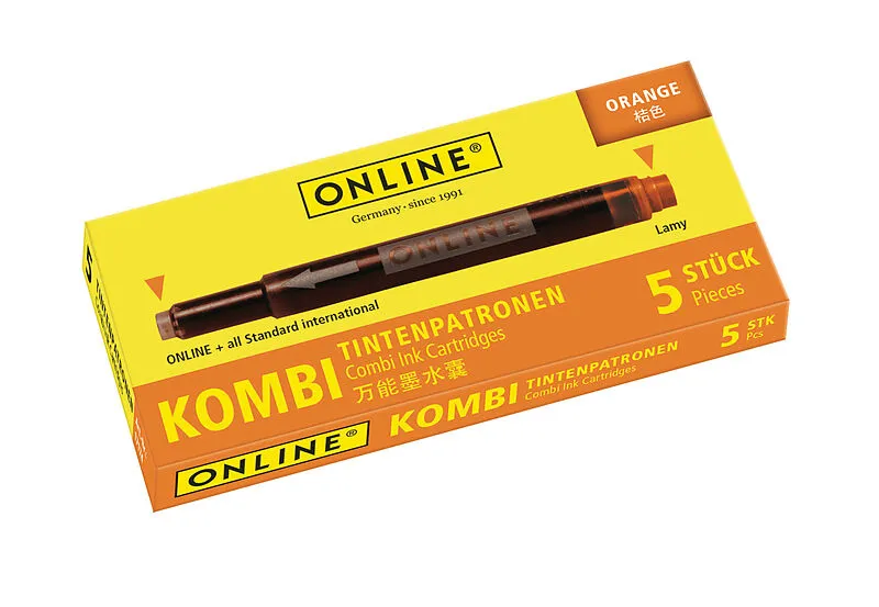 Tintenpatronen Kombi Die Kombipatrone von ONLINE die passt immer! So kann die dünne Seite für ONLINE und alle Standard-Füllersysteme und die dicke Seite für LAMY-Patronenfüller verwendet werden. Die hochwertige Tinte garantiert intensive Schreibfarbe in gleic...