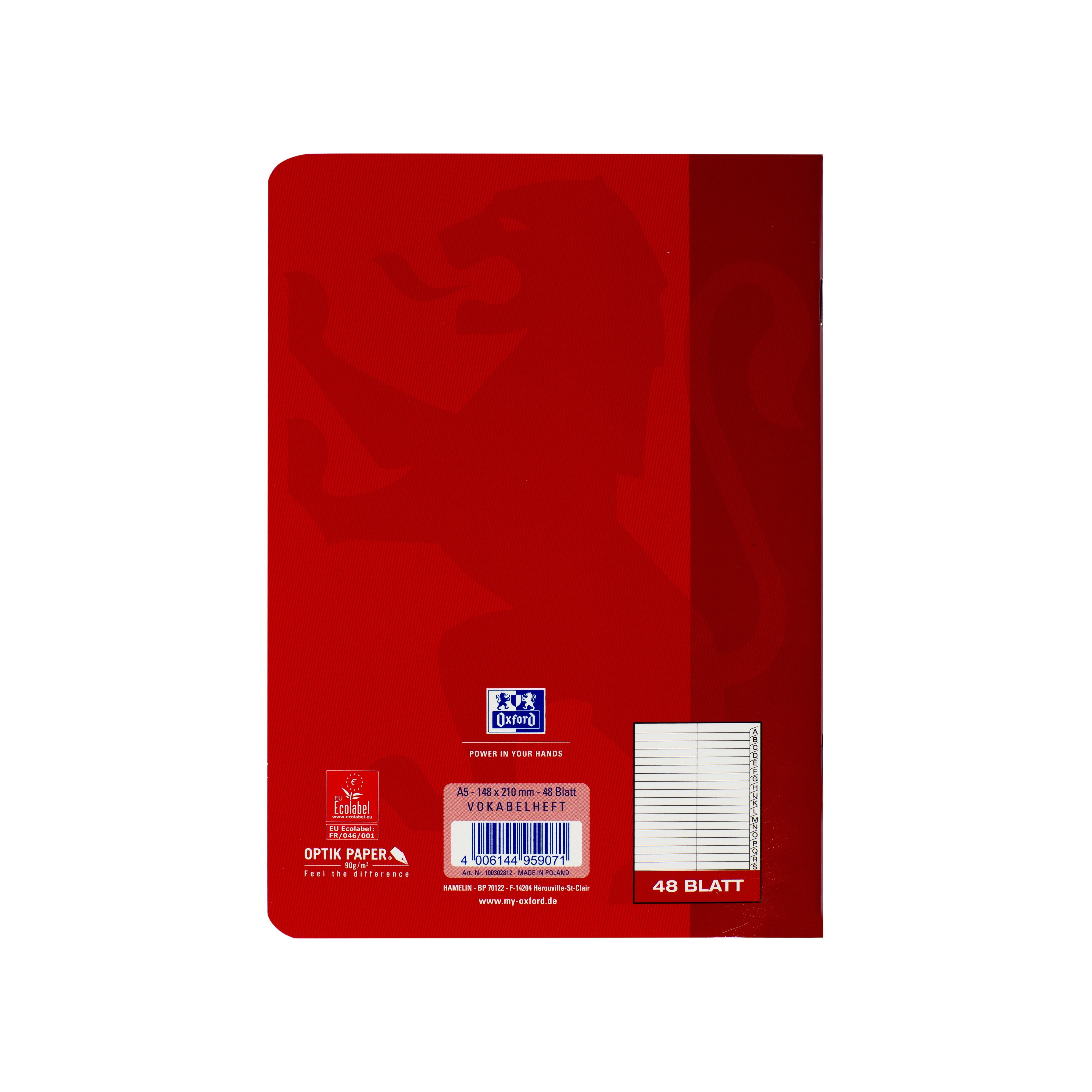 OXFORD Vokabelheft mit Register A5, 48 Blatt, mit Register A-Z, 90 g/m