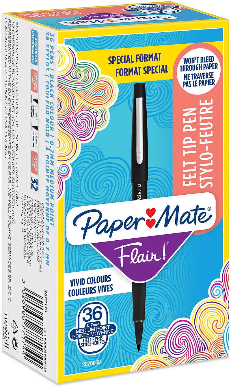 FLAIR - Faserschreiber Die PaperMate Flair Filzspitze ist ideal für kräftige Linien, egal ob zum Zeichnen oder für Notizen. Die Tinte ist schnelltrocknend und wischfest. Die Spitze ist mit einem Point Guard ausgestattet, um ein Ausfransen zu verhindern. Stric...