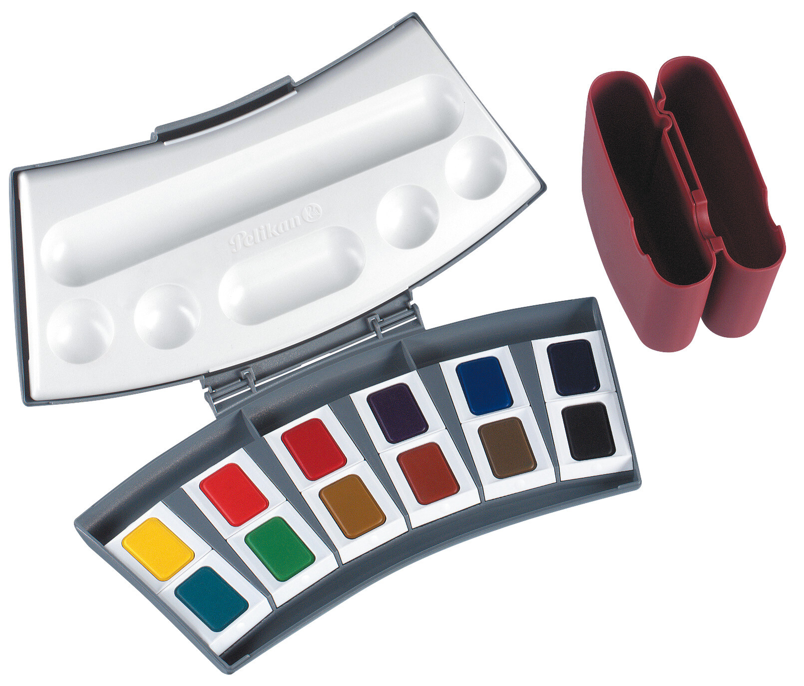 Aquarellkasten Leben Sie Ihre Kreativität aus mit den feinen Studien mit Aquarell. Pure Farbtöne Hohe Farbdichte Leichte Löslichkeit im Napf Sehr gute Lichtbeständigkeit Farbkasten im aussergewöhnlichen Design und mit zwei Wasserboxen und Mischpalette Hochwer...