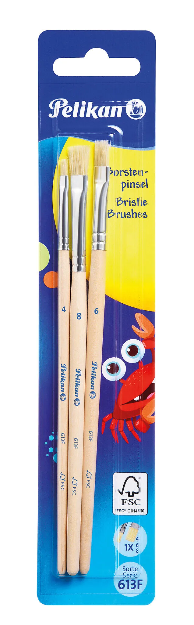 Pelikan Borstenpinsel, Sorte 613F, 3er Set mit den Größen 4, 6 und 8