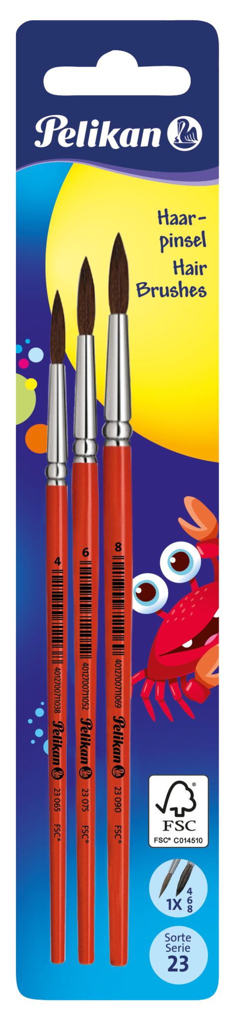 Pelikan Haarpinsel Sorte 23, 3er Set mit den Größen 4, 6 und 8