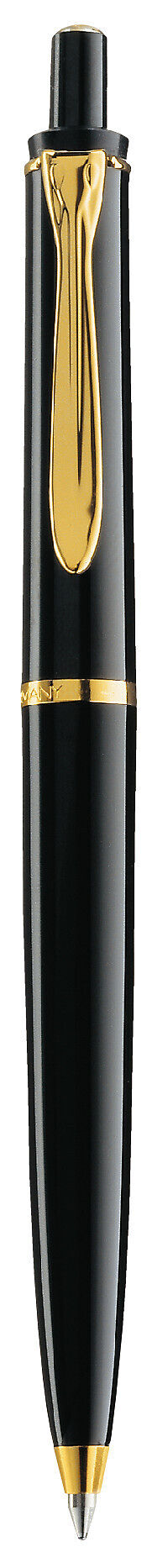 Der Druckkugelschreiber ist mit einer hochwertigen Großraummine ausgestattet. Ober- und Unterteil bestehen aus tiefschwarz gefärbtem, hochglänzendem Edelharz. Der vergoldete Zierring und der typische Pelikan Schnabelclip betonen seine traditionelle Formgebung....