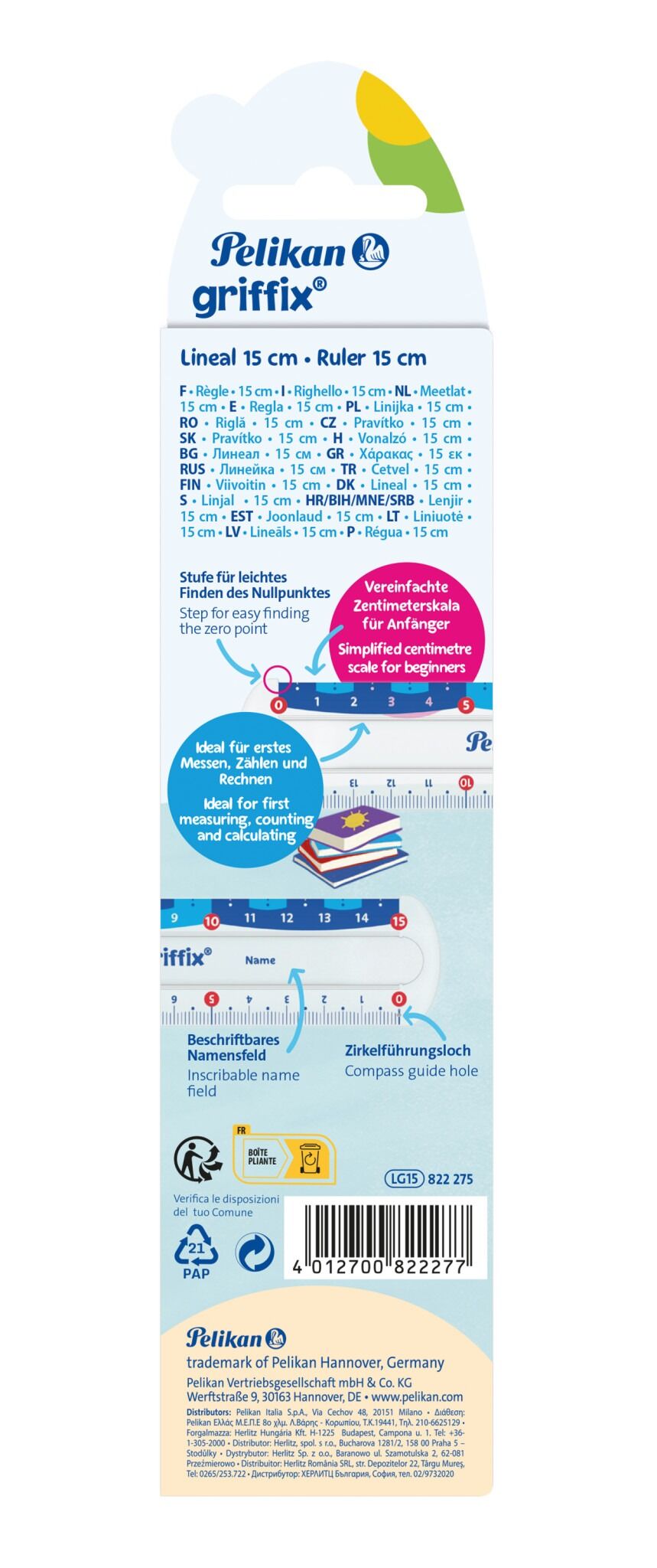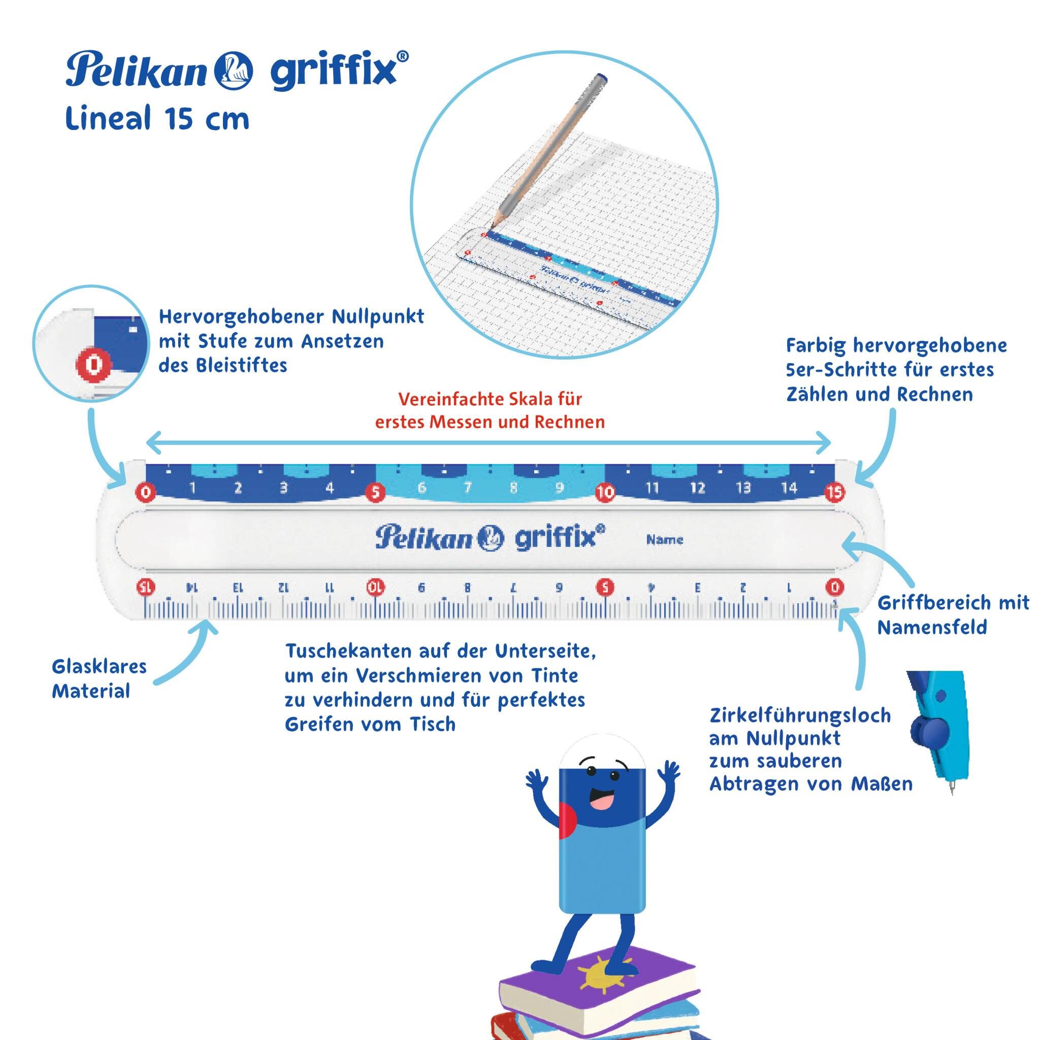 GRIFFIX - Lineal griffix® Lineal in der Länge 15 cm, mit 2 Skalen: 1 Skala zum ersten Messen und Rechnen mit vollen Zentimetern und eine herkömmliche Skala. Die kleine Stufe am Nullpunkt hilft bei der Orientierung wie die Hervorhebungen aller 5 cm. Mit prakti...