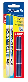 Promocard. 2 Stück Tintenlöscher Super Sheriff, Strichstärke M (Multispitze) + Gratis: 6 Stück Standard-Tintenpatrone TP/6 (königsblau). Made in Germany.