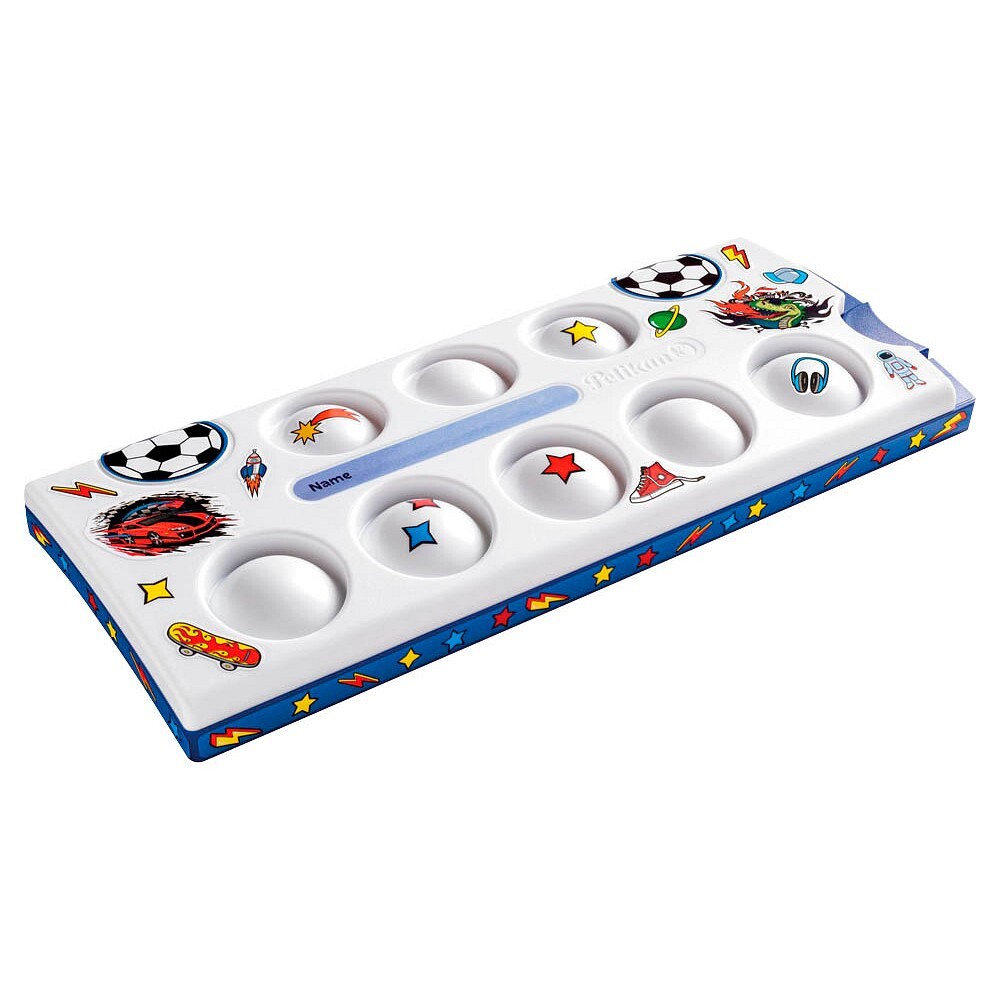 Stickerbogen Blau/Fussball für Deckfarbkasten K12/K24, wasserfest zur Individualiserung des K12 oder K24 Deckfarbkastens. Die Seitenflächen, das Namensfeld sowie sämtliche Flächen des Malkastens können damit verziert werden und machen den Tuschkasten zum Hingu...