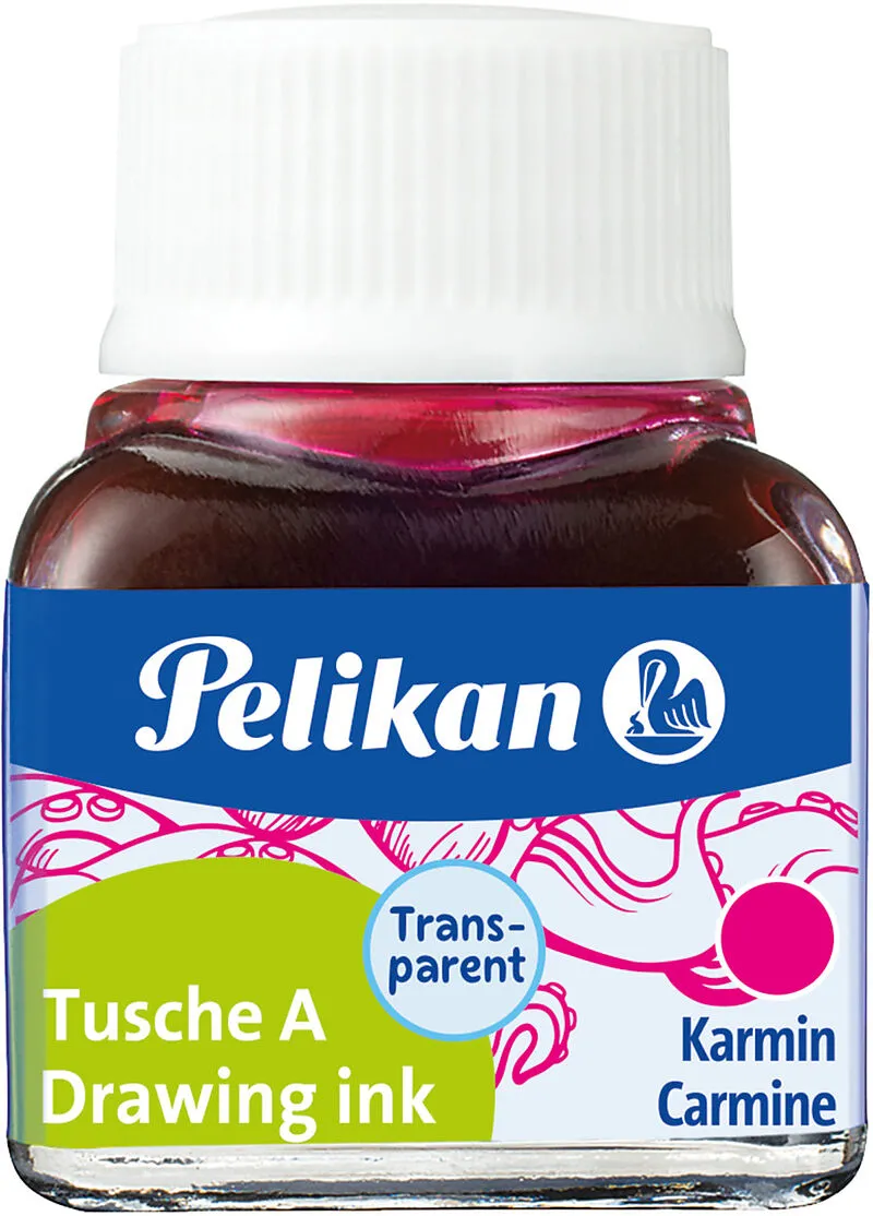Tusche für Zeichenpapiere - Glas 10 ml Die Tusche A von Pelikan eignet sich ideal zum Zeichnen mit der Feder (Reissfeder und Zeichenfeder) und zum Malen mit dem Pinsel. Diese Tusche ist in im 10ml Glas erhältlich. Tusche zum Zeichnen und Malen Besonders geeig...