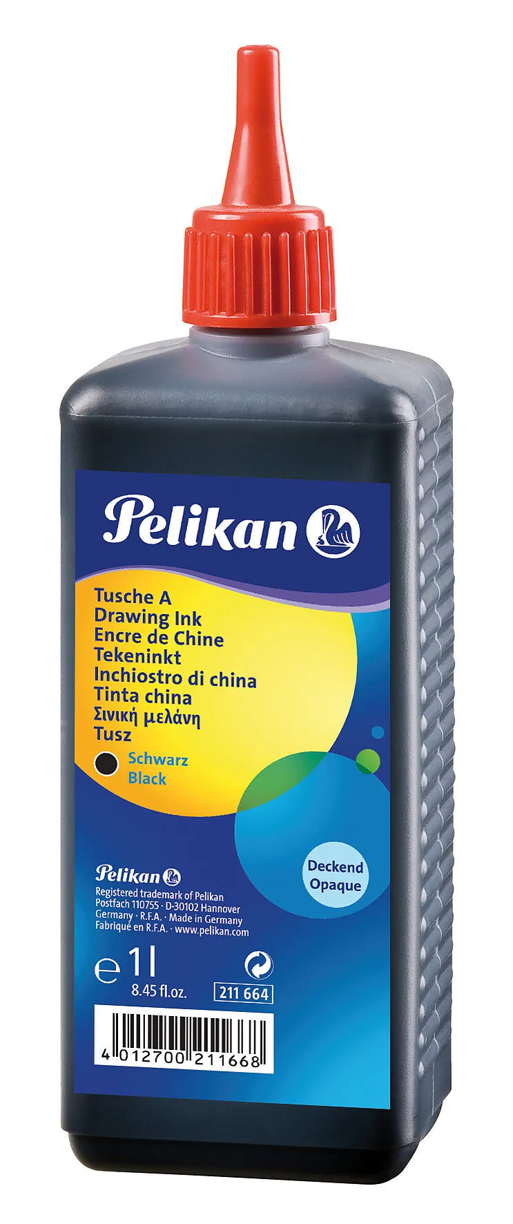 Tusche für Zeichenpapiere -1000 ml Für Beruf, Kunst, Schule und Hobby. Zum Zeichnen und Malen. Geeignet für Reissfeder, Zeichenfeder, Pinsel und Füllhalter mit Kolbenmechanik (Fount India) Tusche A sehr gute Lichtbeständigkeit, mischbar und kopierfähig Behält...