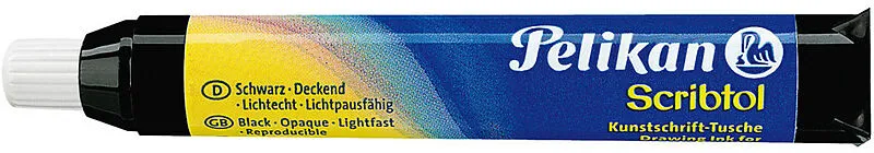 Scribtol Die Tusche Scribtol® von Pelikan eignet sich ideal für verschiedene Zieh- und Zeichenfedern (z.B. für Kalligrafie). Sie ist in der Farbe Schwarz erhältlich und ist besonders leichtflüssig. Im Vergleich zu anderen Tuschen ist diese Tusche auf Papier b...