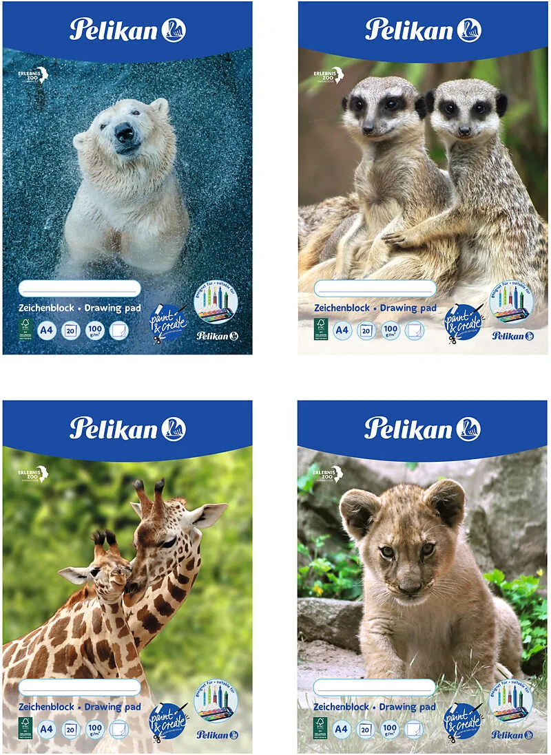 Zeichenblöcke Der Zeichenblock mit verschiedenen faszinierenden Original-Aufnahmen aus dem Zoo Hannover. Wissenschaftlich fundierte Tierbeschreibungen auf der Innenseite. Pelikan-Zeichenblocks sind für alle gängigen feuchten und trockenen Maltechniken hervorr...