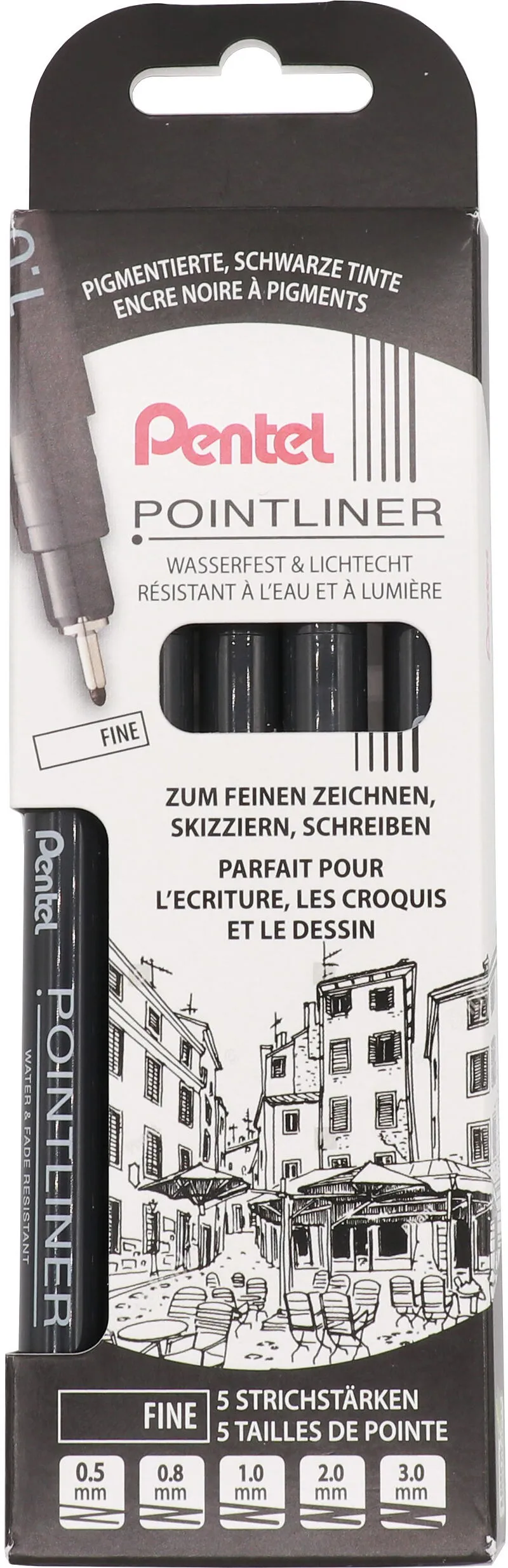 PENTEL Pointliner Pigment Fine YS20P-5F schwarz 5 Stück