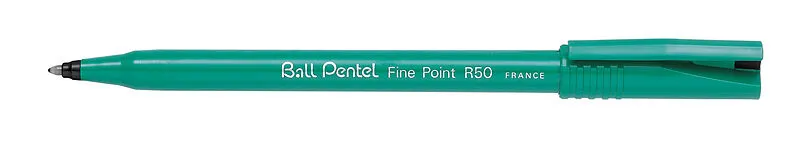 BALL R50 - Rollerball - 0.8 mm Der original Kult-Roller BallPentel in seinem unverwechselbar grünem Gehäuse. Seine weich fliessende Tinte und die plastikgefederte Schreibspitze wurden über die Jahre ein Markenzeichen für angenehmen Schreibkomfort. Ideal für j...
