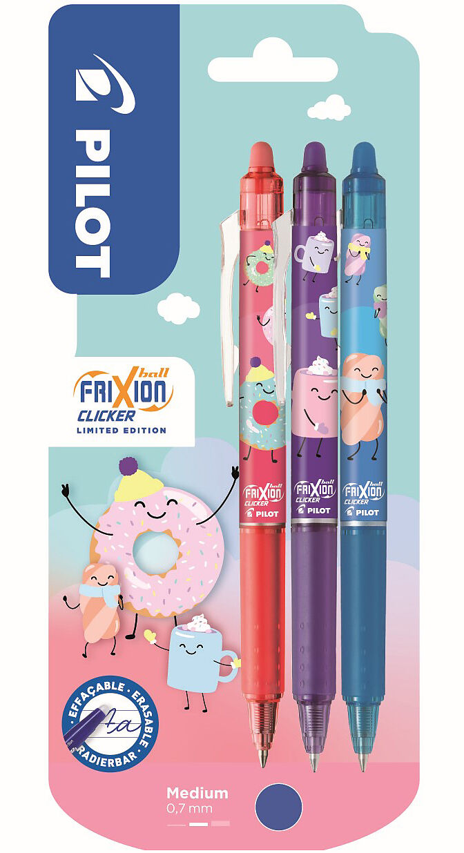 x3 Blister Sweet Paradise Frixion Clicker, Schreibfarbe blau, nachfüllbar, radierbar, süsses Design, Winteredition