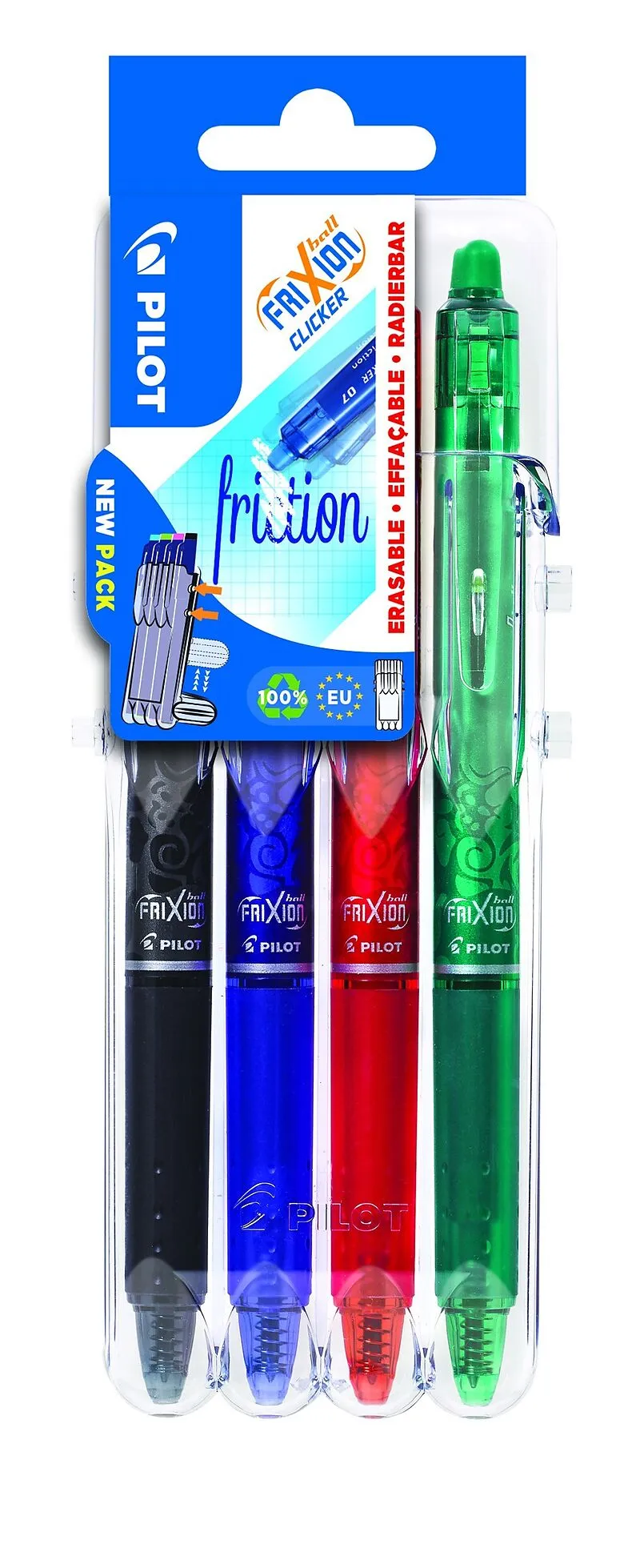 Rollerball FriXion Ball Clicker Set2Go mit Geltinte, 4 Stück Das Frixion Set2Go ist ein intelligentes Stifthaltersystem, das zu einem fantastischen Schreibtischorganisator werden kann. Diese innovative Verpackung wird zu 100% aus recyceltem Material in Europa...