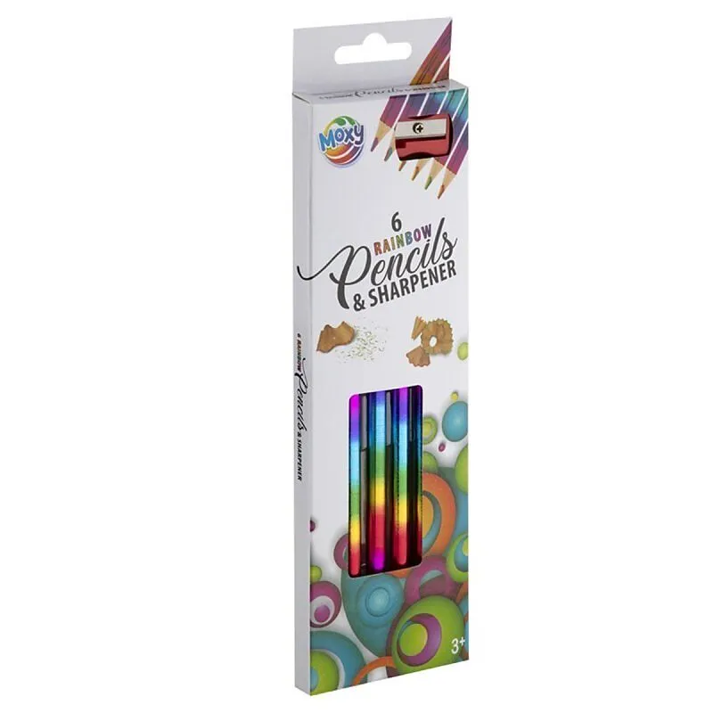 Regenbogen Farbstifte 6 Stück im Set und Spitzer.