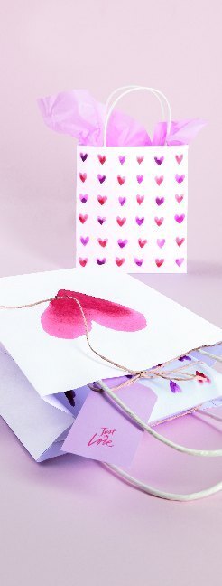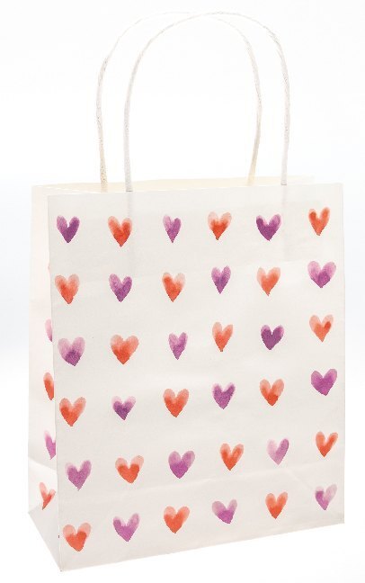 Papiertüte Herzen Für Geschenke, die von Herzen kommen: die weissen Papiertüten mit aquarillierten Herzen. Eine Tüte hat ein schlichtes rotes aquallieriertes Herz. Die zweite Tüte hat viele kleine aquallirierte Herzen in rot und lila Tönen. Damit ist das Verp...