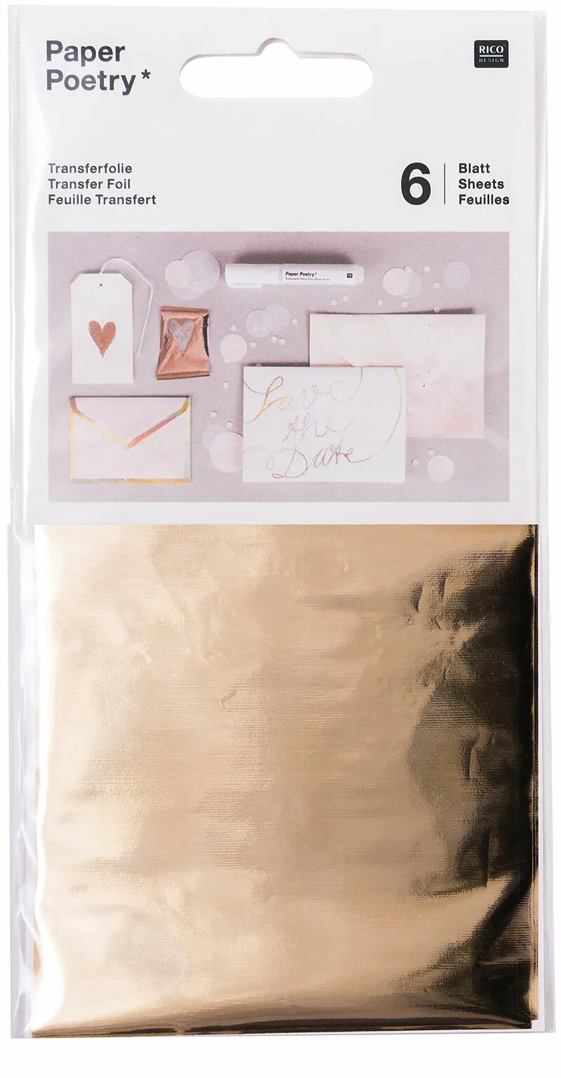 Transferfolie Die Paper Poetry Transferfolie ist ideal zum metallischen Verzieren in 3D-Optik und kinderleicht in der Anwendung: Malen oder Schreiben Sie mit dem Klebestift auf Papier, Pappe oder was auch immer Sie verzieren möchten, legen Sie die Transferfol...