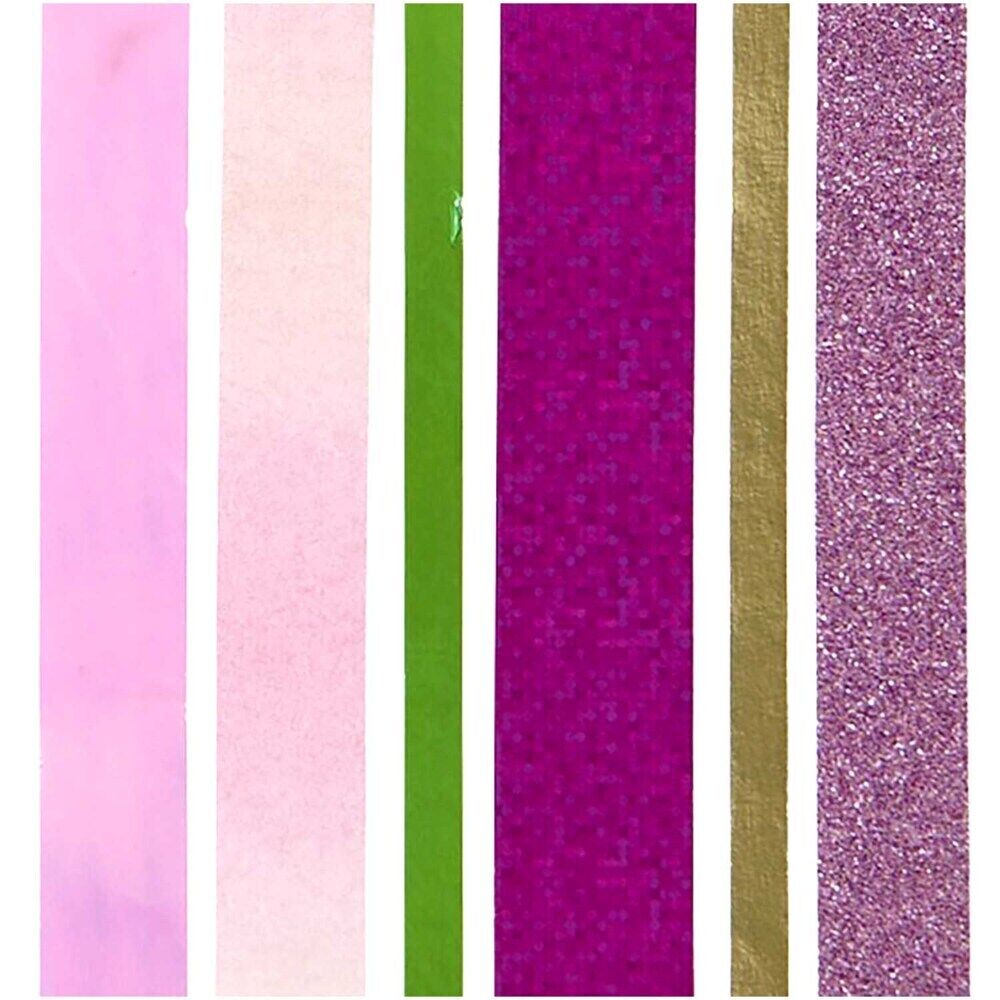 Washi Tape Das Tape Set bringt Farbe und Charme in alle kreativen Bastelideen! Dieses sechsteilige Set enthält eine Auswahl an hochwertigen, selbstklebenden Washi Tapes in verschiedenen glänzenden Ausführungen und unterschiedlichen Breiten. Bestens geeignet f...