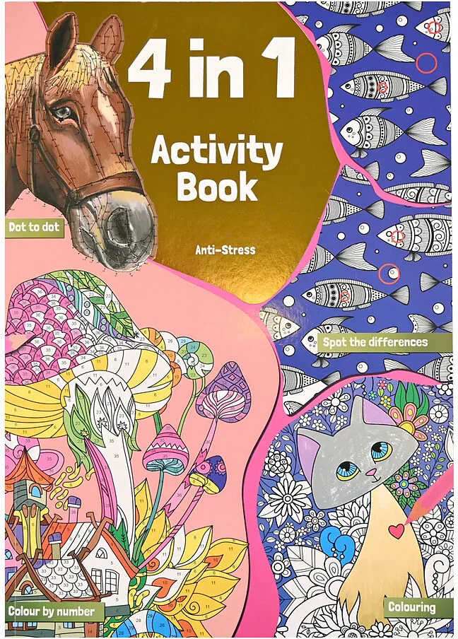 Activity Buch Entdecken Sie endloses Vergnügen mit dem 4 in 1 Activity Malbuch! Dieses vielseitige Buch bietet eine Vielzahl von Aktivitäten, darunter Malen, Rätsel, Labyrinthe und mehr. Lassen Sie Ihrer Kreativität freien Lauf, während Sie die Ausmalbilder a...