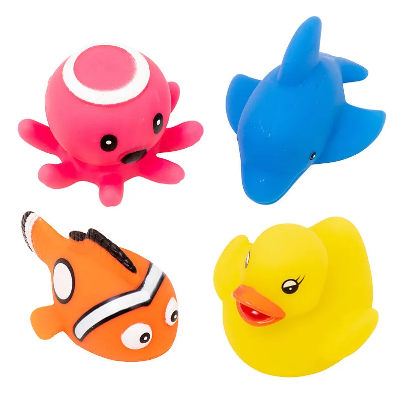 Ein Sortiment von Wassertieren schwimmt in der Badewanne und leuchtet auf, sobald es das Wasser berührt! Perfekt, um die Badezeit Ihres Kindes zu beleben!