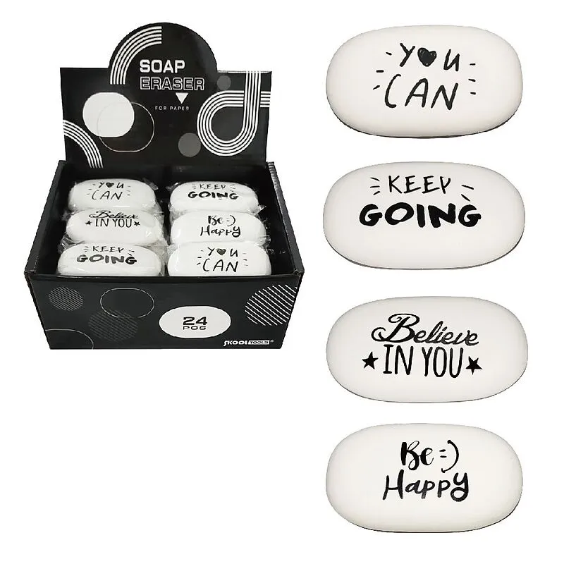 Keine Farb- / Modelauswahl möglich, Versand erfolgt nach Zufallsprinzip Radiergummi Unsere Soap-Radierer im Seifen-Look sind mehr als nur praktische Helfer im Schul- oder Büroalltag sie inspirieren mit jeder Verwendung! Mit Sprüchen wie "Yes I Can", ...