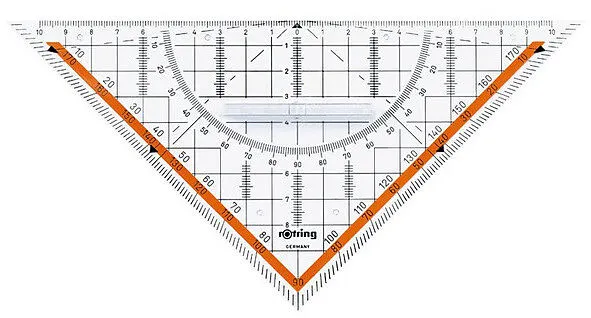 Geometrie-Dreieck Das Geometrie-Dreieck von ROTRING wurde aus glasklarem, stabilem Kunststoff hergestellt und überzeugt durch seine Robustheit. Gegenläufige Bezifferung ist farbig hinterlegt. transparent Kristallklarer, stabiler Kunststoff Gegenläufige Skala ...