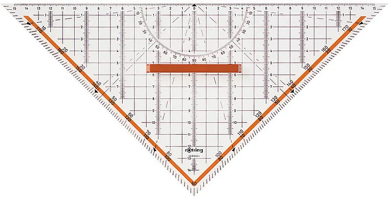 CENTRO - Geometrie-Dreieck Das Geometrie-Dreieck von ROTRING wurde aus glasklarem, stabilem Kunststoff hergestellt und überzeugt durch seine Robustheit. Gegenläufige Bezifferung ist farbig hinterlegt. transparent Kristallklarer, stabiler Kunststoff Gegenläufi...