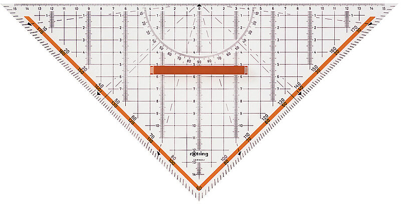 CENTRO - Geometrie-Dreieck Das Geometrie-Dreieck von ROTRING wurde aus glasklarem, stabilem Kunststoff hergestellt und überzeugt durch seine Robustheit. Gegenläufige Bezifferung ist farbig hinterlegt. transparent Kristallklarer, stabiler Kunststoff Gegenläufi...