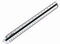 Hochwertiger Dreikantmassstab aus weissem Kunststoff in transparentem PP-Etui. Drei farbige Hohlkehlen, markante, grosse Vorbezifferung. Länge 30 cm, Teilung DIN = 1:2,5:5:10:20:50:100