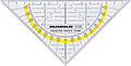 Geodreiecke Geometriedreieck aus transparentem Kunststoff, mit Facette, farbig hinterlegter, gegenläufiger Gradskala und Tuschenoppen. Länge Hypotenuse: 160 mm, Einstechpunkt für Zirkel beim Nullpunkt, schülergerechte Ablesbarkeit der Gradmasse (mathematische...