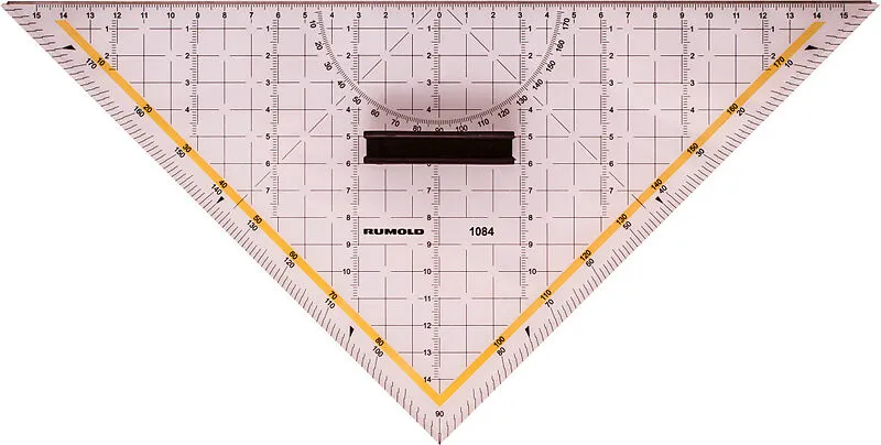 Das Techn. Zeichendreieck von RUMOLD mit Schneidekante aus rostfreiem Stahl eignet sich ideal für das Messen, Zeichnen und Schneiden mit einem Gerät.
