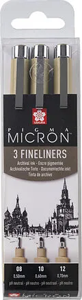 PIGMA MICRON - Fineliner Set 3 Stk. Eine Auswahl von 3 schwarzen Pigma Micron-Stiften mit den breitesten Spitzen: 1 x 08 (0.50mm), 1 x 10 (0.60 mm), 1x 12 (0.70mm). Er ist darüber hinaus der empfohlene Stift zum Zentangle-Zeichnen. Dank der feinen Spitze ist ...