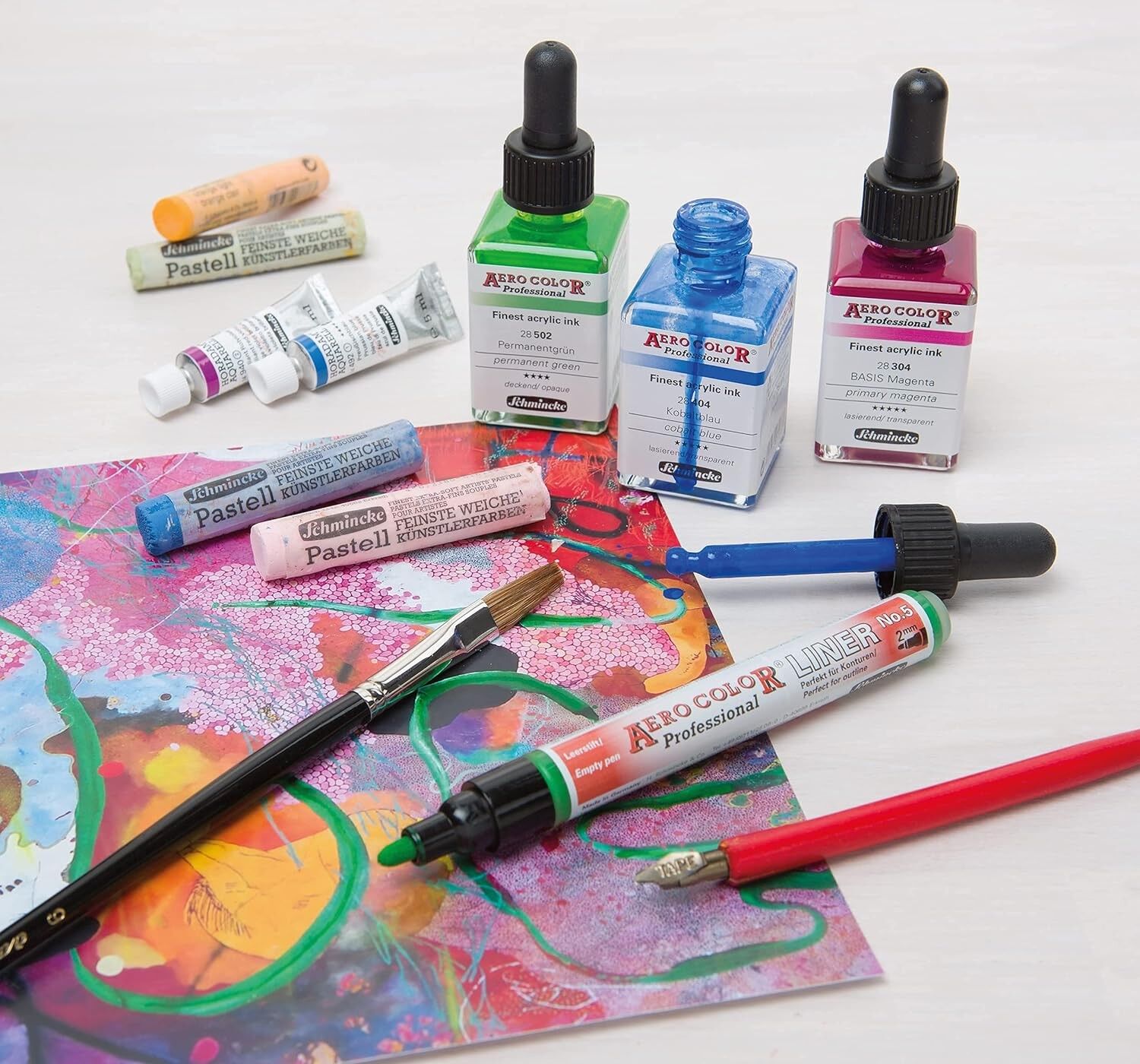 Die feinste Schmincke Airbrushfarben, brilliant und höchst lichtecht, die speziell für die Spritzpistole entwickelt wurden, aber auch sehr gut mit Tuschefüllern, Ziehfedern und Pinseln zu verwenden sind. AERO COLOR Farben sind gebrauchsfertig und können aufgru...