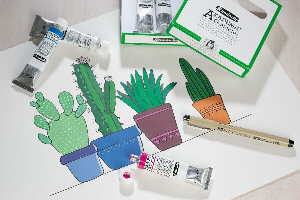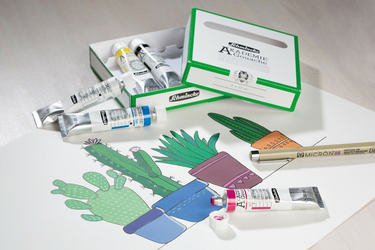 Kartonset mit 5 Grundfarben feiner Künstler-Gouache in 20 ml (L x B x H 11 x 10,6 x 1,9 cm), idealer Einstiegskasten in die Gouachemalerei, deckende Primärfarben + Weiß + Schwarz, zum Mischen brillanter Farbtöne, für Farblehre, für Illustration und Malerei, Ei...