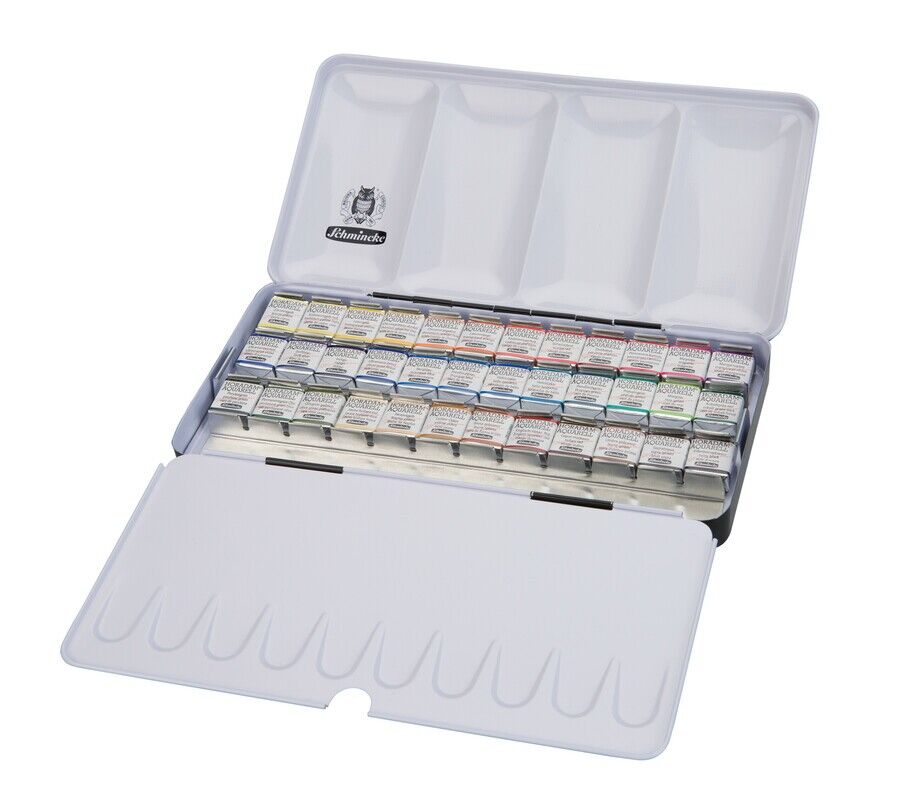 Der HORADAM Aquarellmalkasten von Schmincke besteht aus einem stabilen Metallkasten (L x B x H: 23,1 x 11,6 x 3 cm) mit 36 coloristisch ausgewählten Farben, Platz für 12 weitere halbe oder 6 ganze Näpfchen sowie einer integrierten Mischpalette. Die Farben im K...