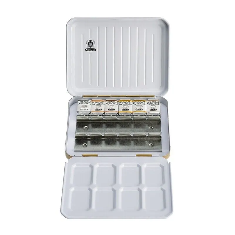 Metallkasten Edition Gold: - Gold lackierter Metallkasten im eleganten Rillendesign - 6 Goldtöne in Näpfchen (limitierte Farbtöne): Weißgold, Rosgold, Rotgold, Gelbgold, Antikgold, Hellgold - Für goldglänzende Effekte - 2 Leerschienen für 12 weitere Näpfchen ...