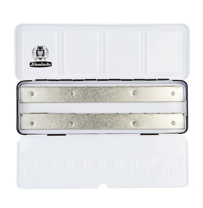 Der HORADAM AQUARELL Metall-Leerkasten zur individuellen Bestückung mit 24 x 1/2 halben Näpfchen oder 12 x 1/2 halben Näpfchen HORADAM AQUARELL, mit Mischpalette (L x B x H: 22,3 x 7,2 x 2,3 cm). Schmincke stellt seit 1881 beste, feinste Künstlerfarben Made in...