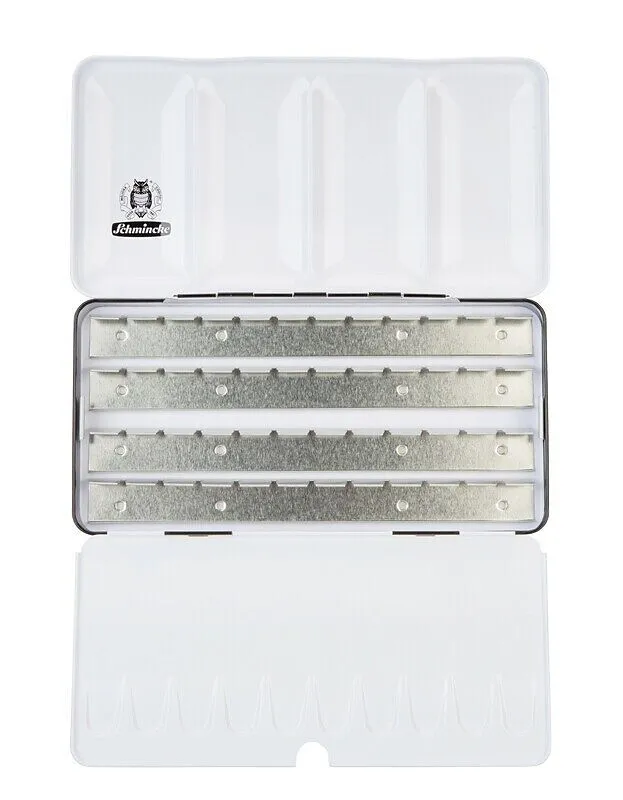 Der HORADAM AQUARELL Metall-Leerkasten zur individuellen Bestückung mit 48 x 1/2 halben Näpfchen oder 24 x 1/2 halben Näpfchen HORADAM AQUARELL, mit Mischpalette (L x B x H: 23,1 x 11,6 x 3 cm). Schmincke stellt seit 1881 beste, feinste Künstlerfarben Made in ...