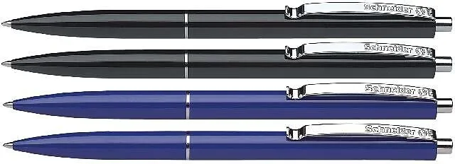 Schlanker Kugelschreiber mit stabilem Metallclip und Metalldrücker - millionenfach bewährt und beliebt. Blisterkarte mit 4 Stück, Gehäusefarben / Schreibfarben 2 x schwarz und 2 x blau. Mit auswechselbarer Mine M mit verschleißfester Edelstahlspitze, dokumente...