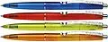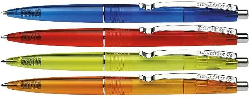 Kugelschreiber in frischen Transparentfarben. Blisterkarte mit 4 Stück, Gehäusefarben sortiert, Schreibfarbe blau. Der leicht gewölbte Korpus bewirkt eine angenehme Schreibhaltung. Mit auswechselbarer Mine mit Jumbospitze Medium (M), dokumentenecht nach ISO 12...