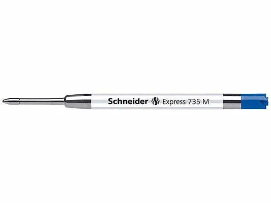 Kugelschreibermine Express 735 M Die verschleissfeste Edelstahlspitze garantiert, dass der grosse Pastenvorrat vollständig und schmierfrei genutzt werden kann. Passend in alle Schneider-Kugelschreiber mit Plug+Play-System und viele andere Fabrikate. Metall-Gr...