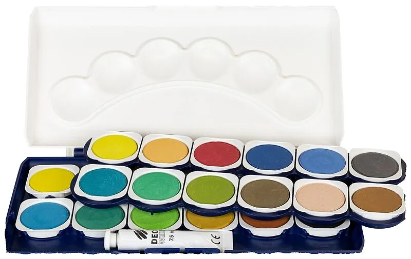 Stylex 24er Schuldeckfarbkasten mit 1 Tube Deckweiß und 6 Mischfeldern 24er Schuldeckfarbkasten mit einer Tube Deckweiß ohne Pinsel. Der Deckel ist zum Abnehmen und bietet ein leichtes Öffnen und Schließen. Es gibt 6 integrierte runde Mischfelder mit auswechse...